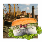 Das Genusskutter-Brötchen hat, wie gesagt, eine eher rechteckige Form, vor allem aus kulinarischen Gründen – es passt schlicht mehr hinein. Fisch, Beilagen, Marinaden – so ein Fischbrötchen enthält einiges, was aufeinander abgestimmt und geschichtet werden muss. Neben den rein geschmacklichen Aspekten muss es eben auch praktischen Ansprüchen genügen. Die vielen frischen Zutaten sollen schließlich unbeschadet den Gaumen des Genießers erreichen und dessen Herz erfreuen.